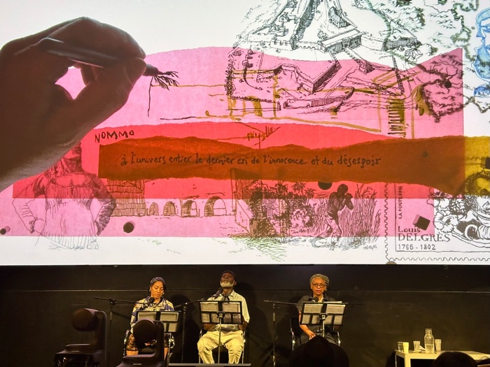 Séance de lecture d’extraits d’un scénario inédit, Les révoltés du Matouba, écrit par Sarah Maldoror en 2009, par Eric Ebouaney et Makeda Monnet.
