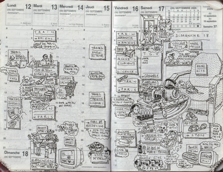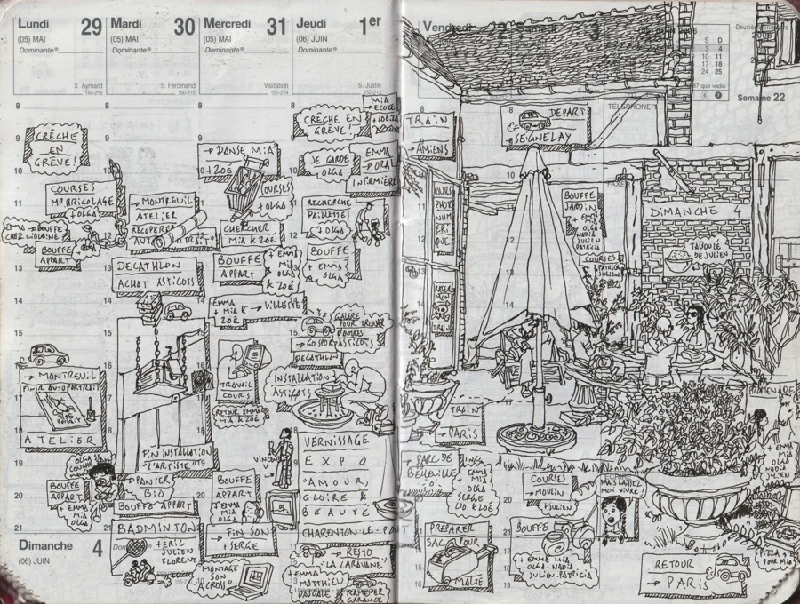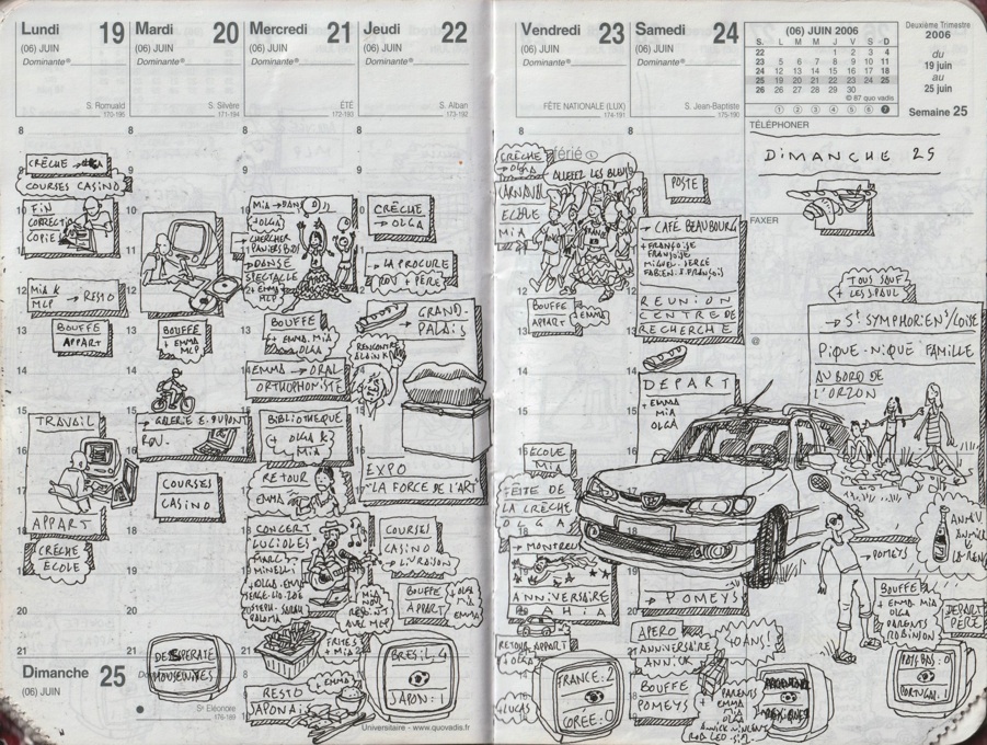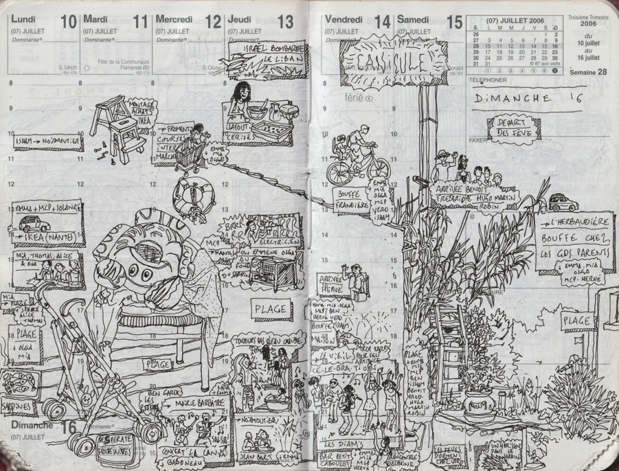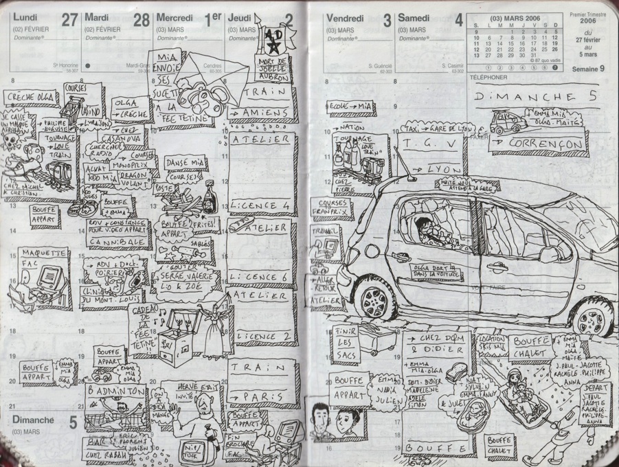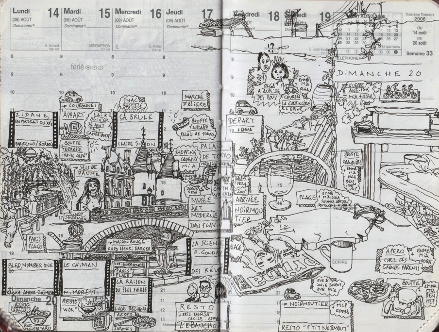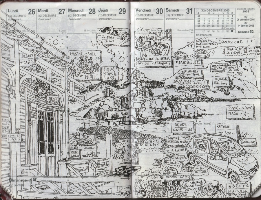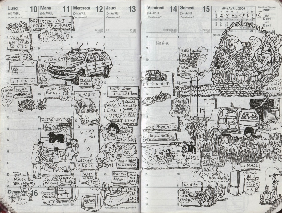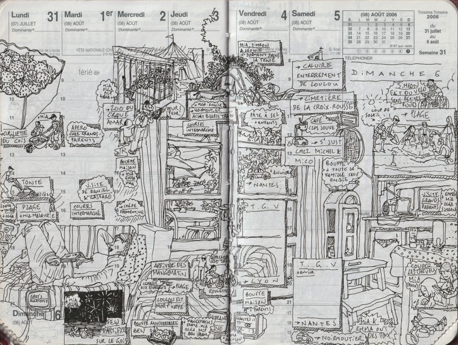 Lundi 8 août 2005, Tom et Marie arrivent avec un voilier remorqué par leur légendaire BX (dessinés ici).