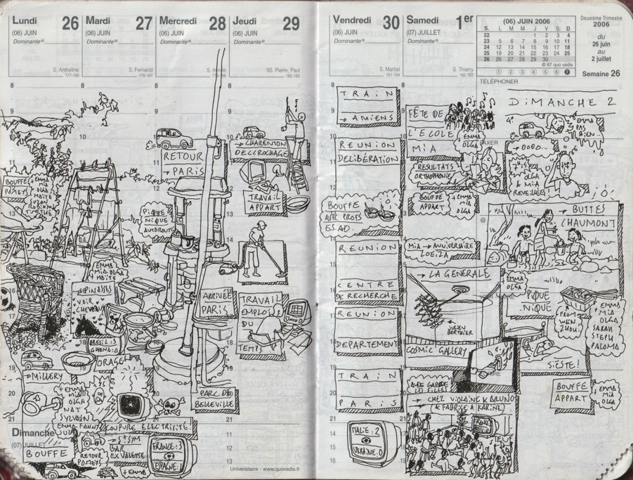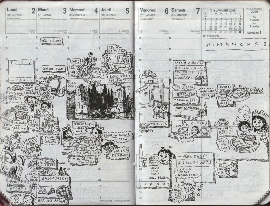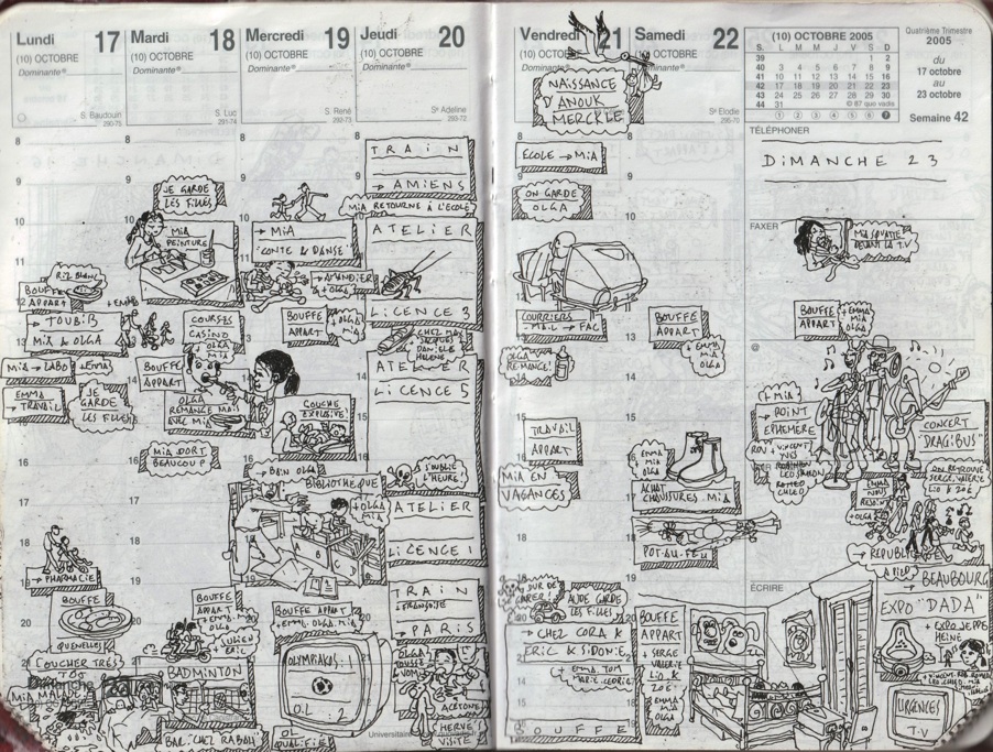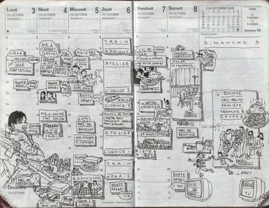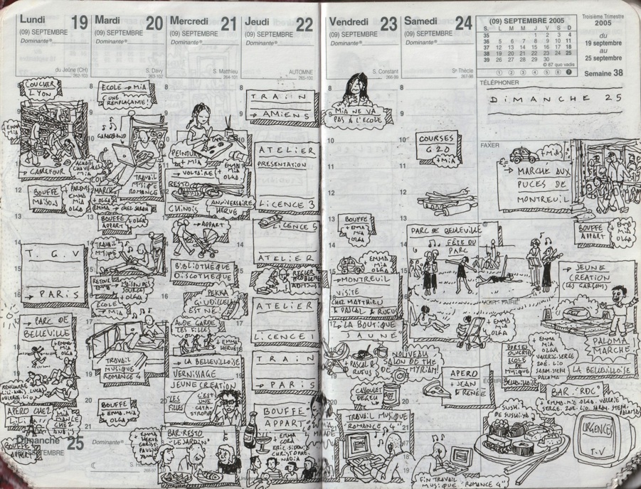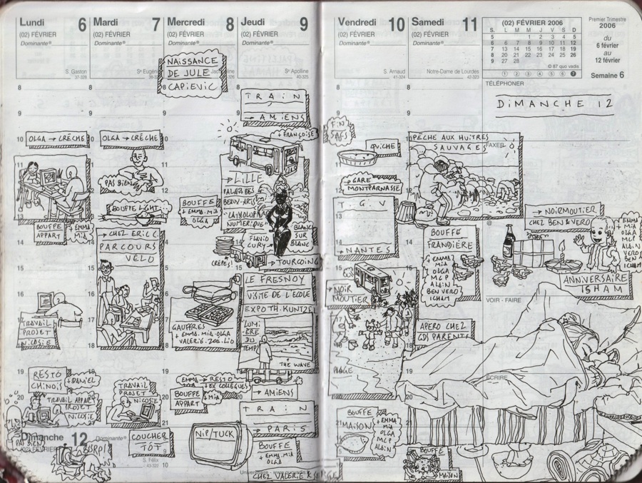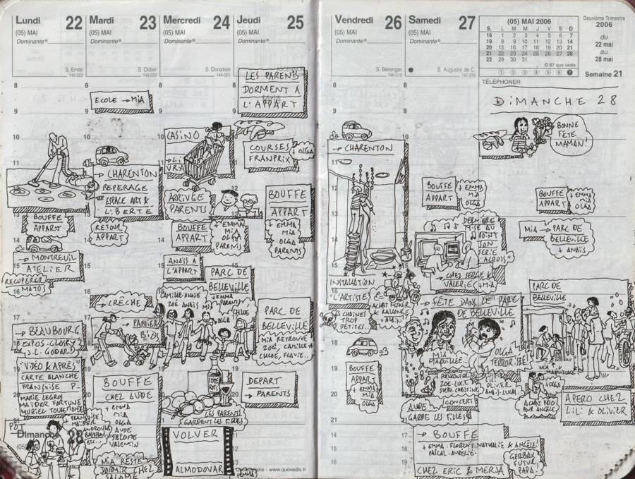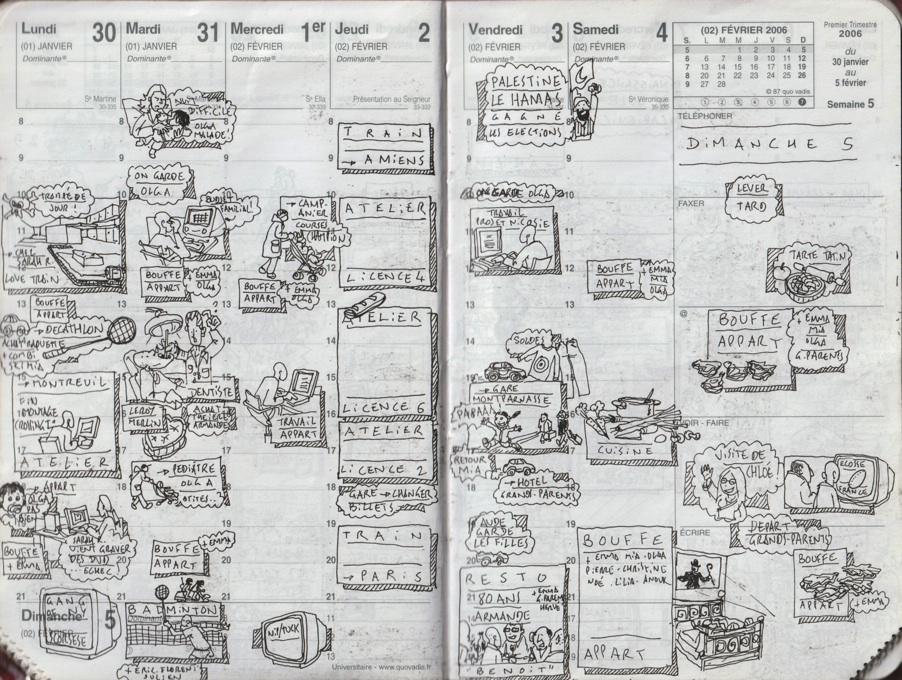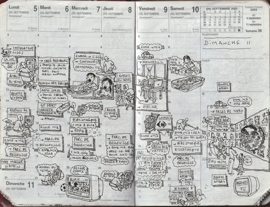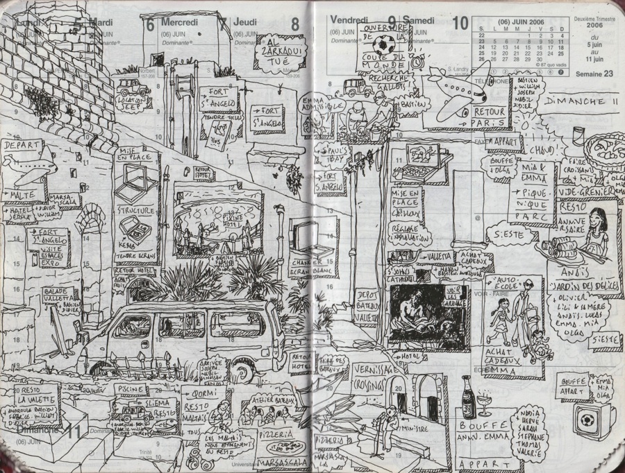 Lundi 8 août 2005, Tom et Marie arrivent avec un voilier remorqué par leur légendaire BX (dessinés ici).