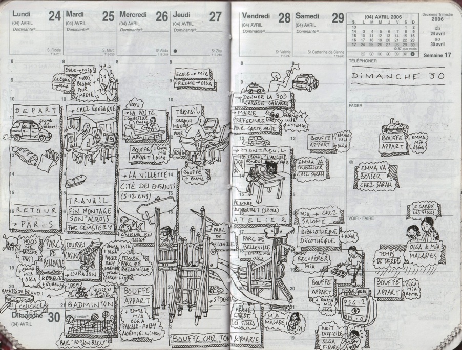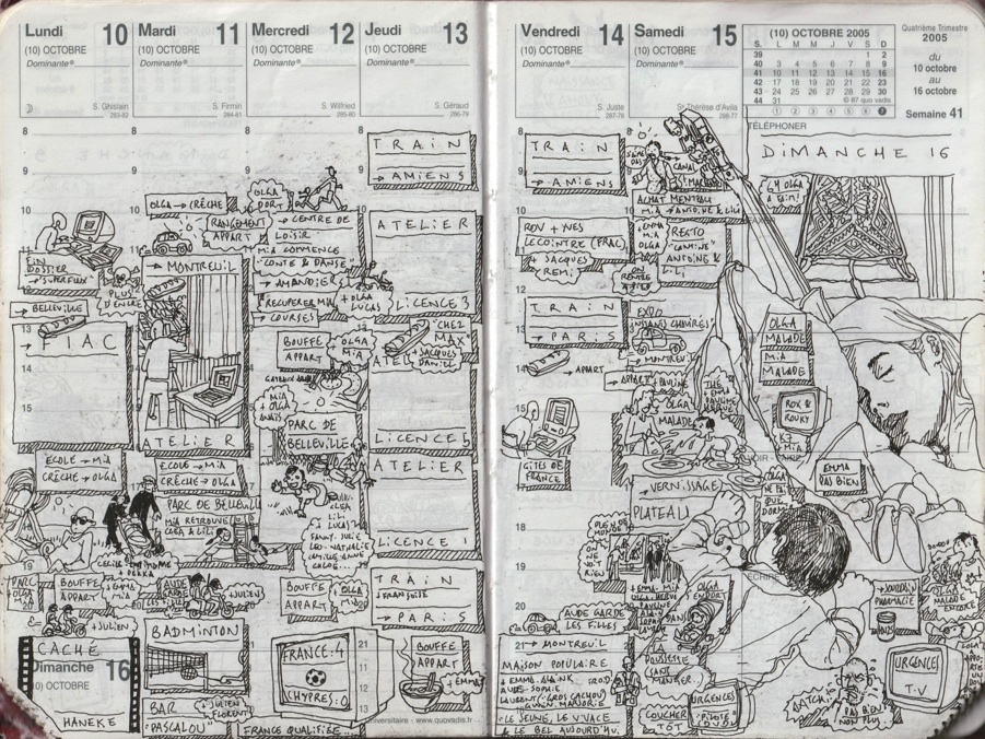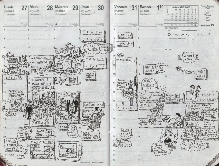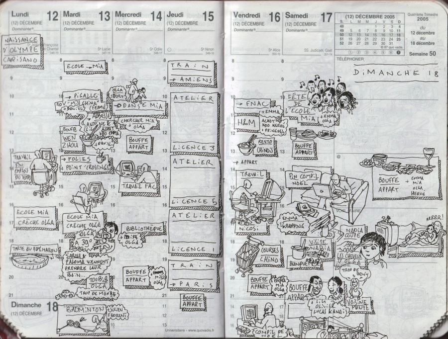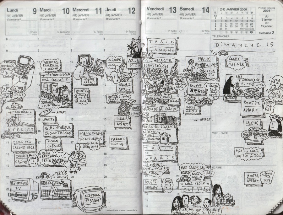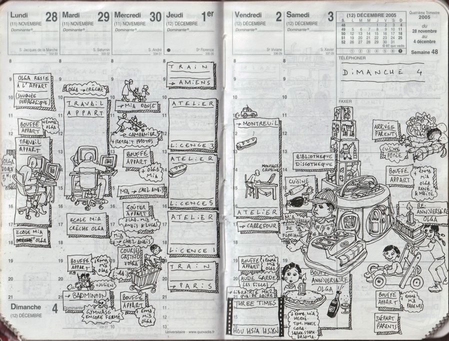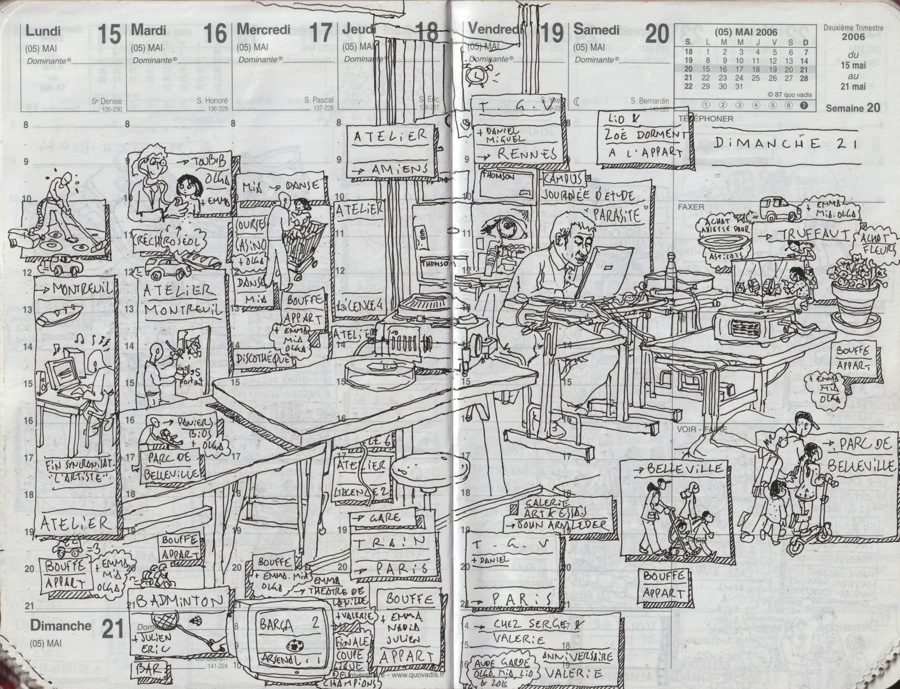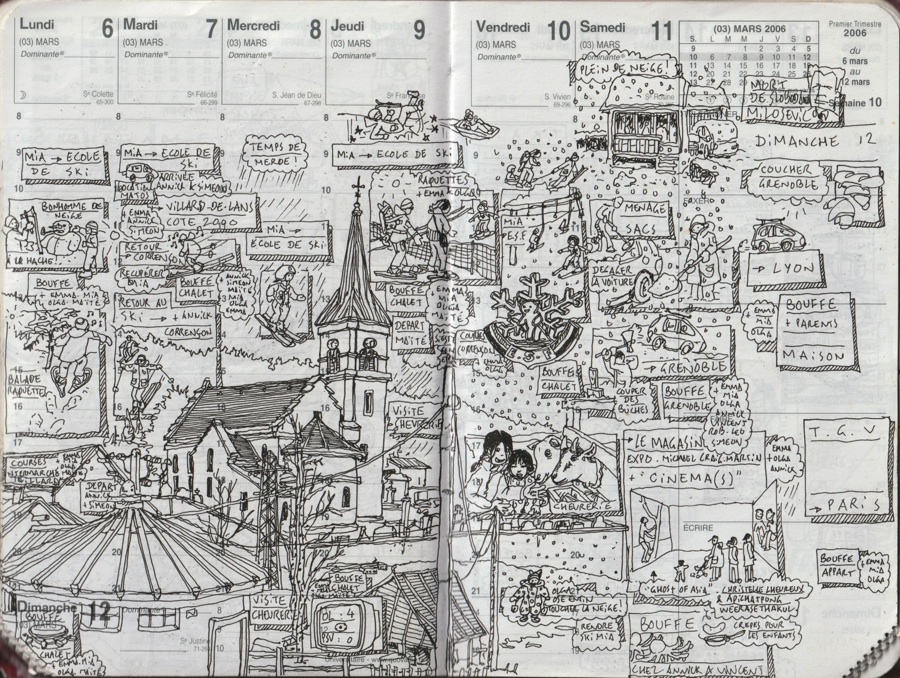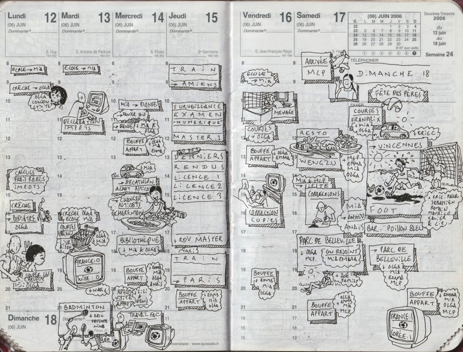 Lundi 8 août 2005, Tom et Marie arrivent avec un voilier remorqué par leur légendaire BX (dessinés ici).