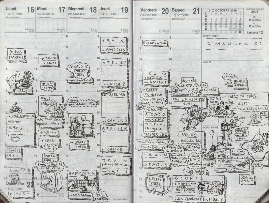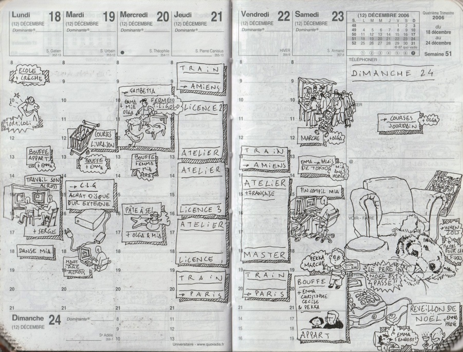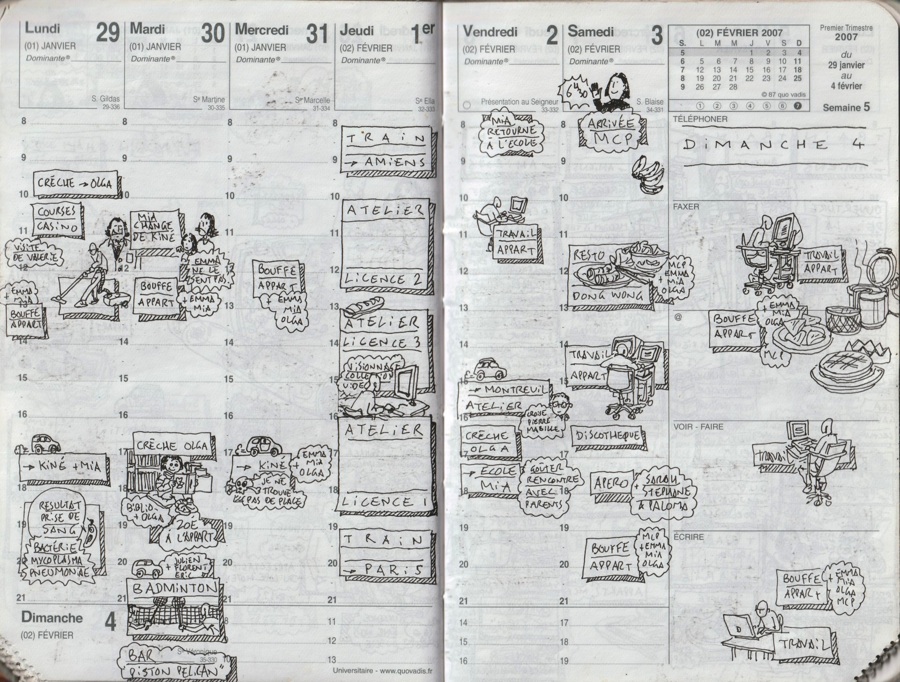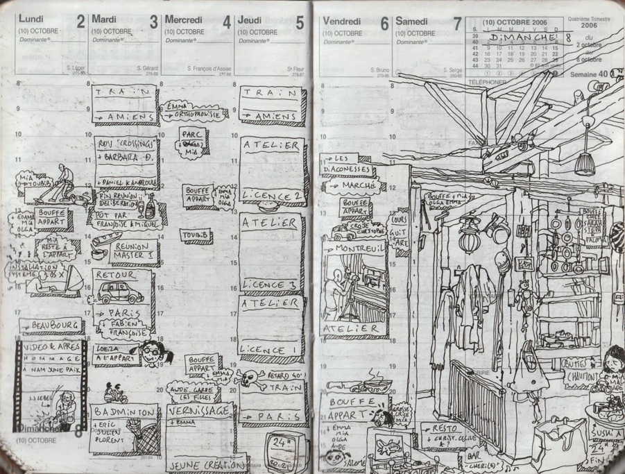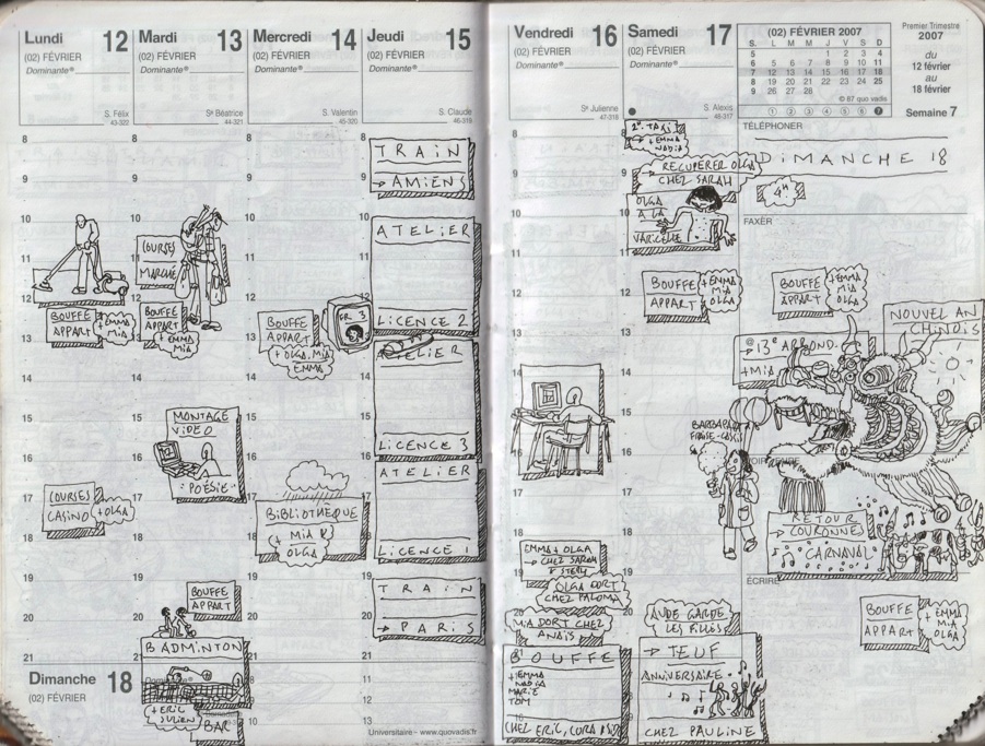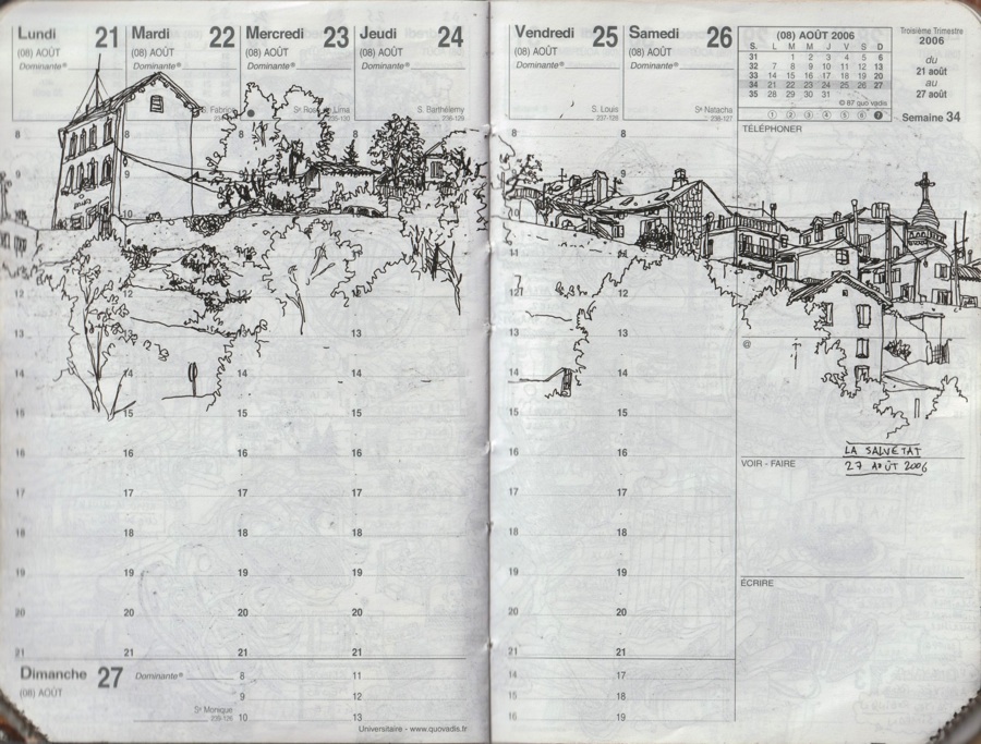 Je me suis trompé d’une semaine pour commencer cet agenda alors j’ai corrigé manuellement les dates. Cela libère une double page pour un croquis.