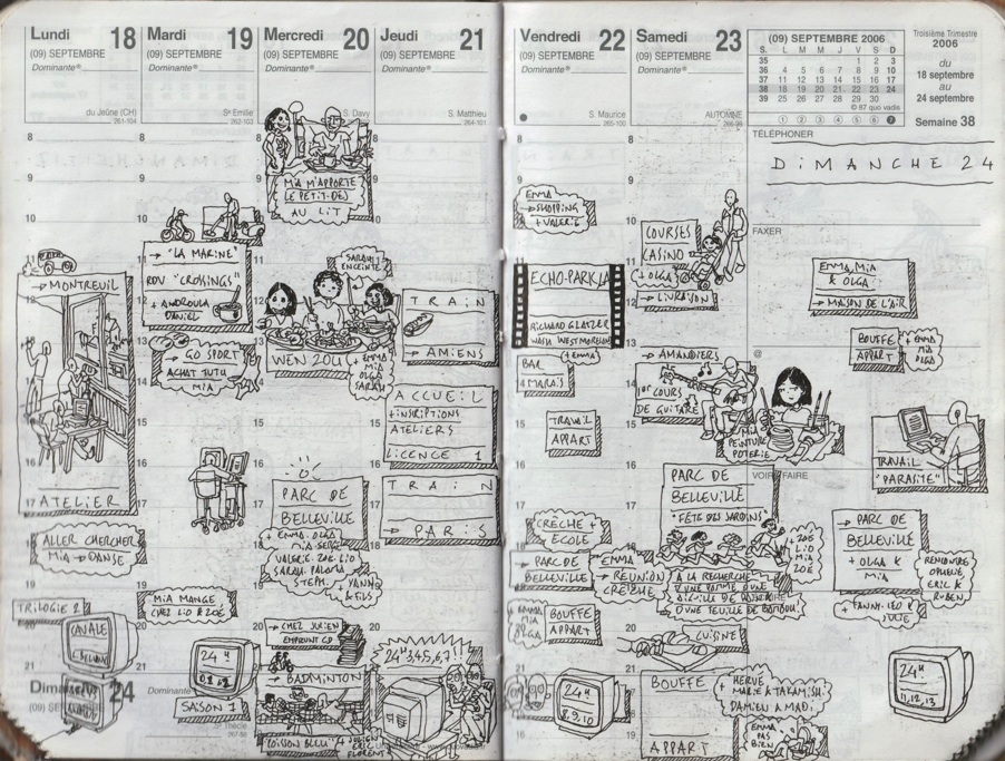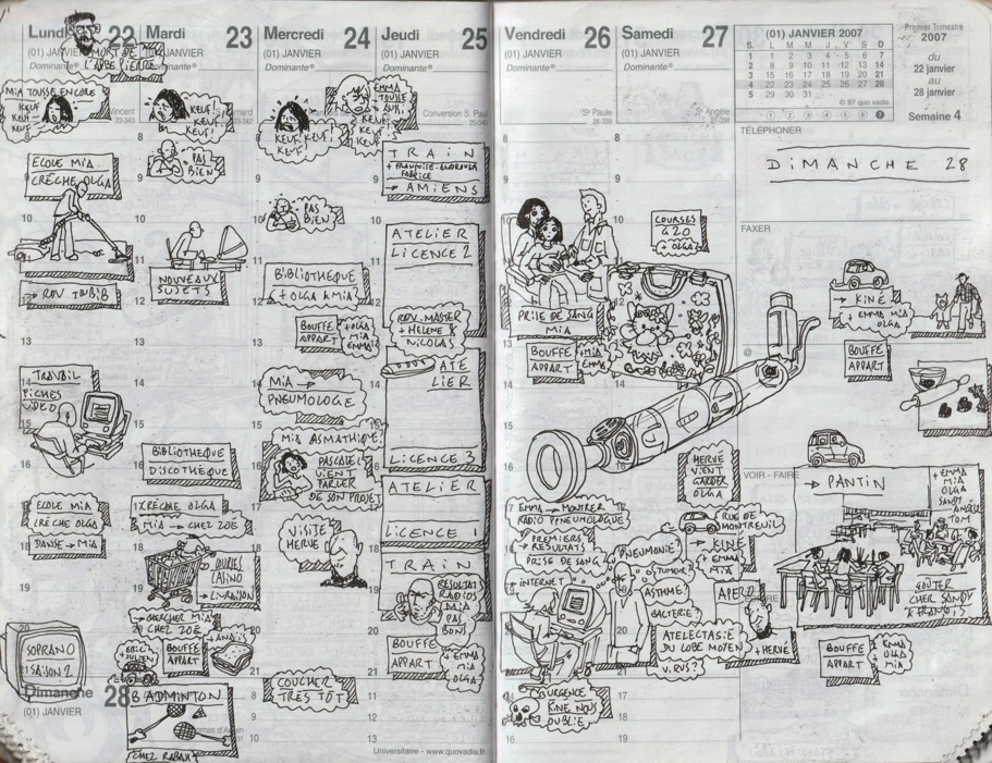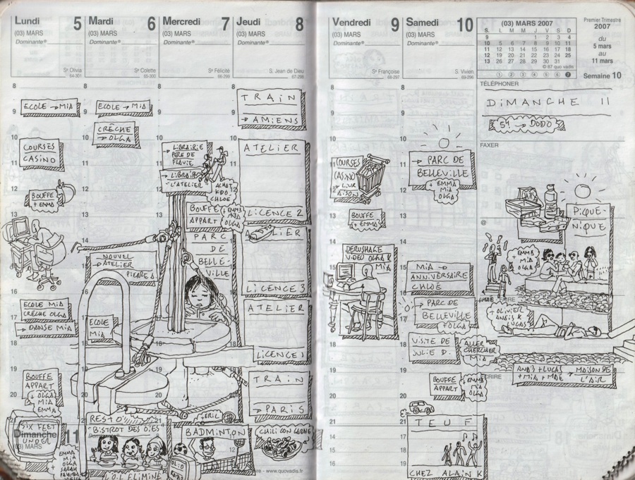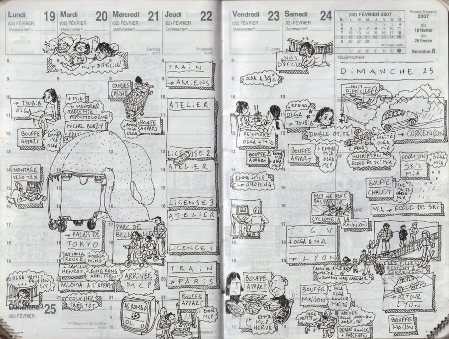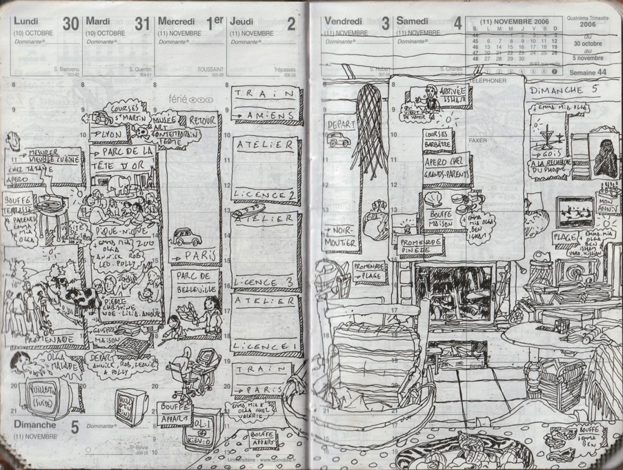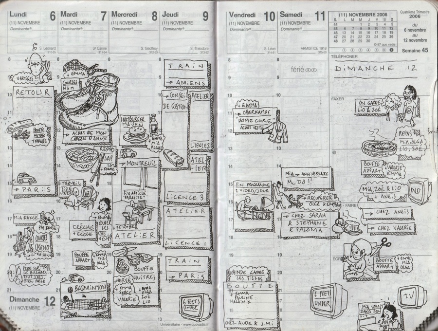 Je me suis trompé d’une semaine pour commencer cet agenda alors j’ai corrigé manuellement les dates. Cela libère une double page pour un croquis.