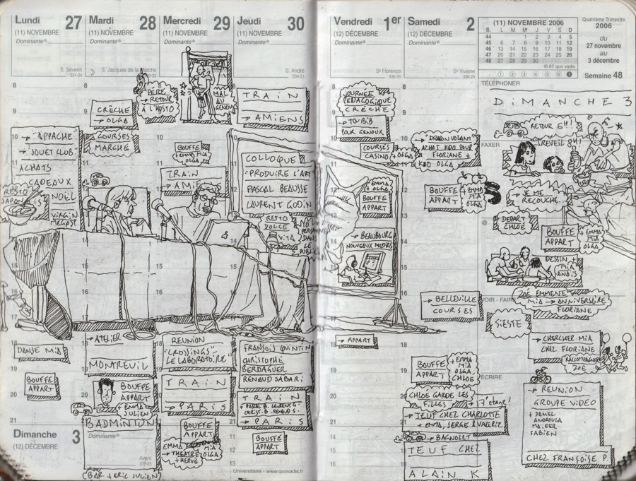 Beaucoup de colloques organisés par les collègues à Amiens : « L’animalité » (22 novembre) et « Produire l’art » (30 novembre avec Pascal Beausse au micro). Trop peut-être : je note « 10 personnes dans le public » le jeudi…