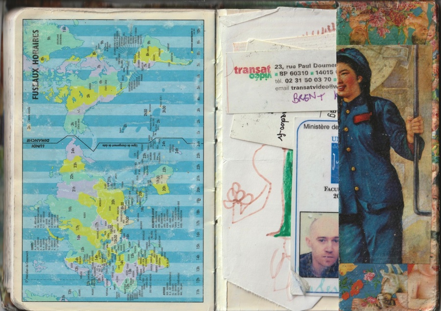 Dans le revers de cet agenda, la carte de visite de Brent, au-dessus de ma carte de prof, avec ma jeune tête !