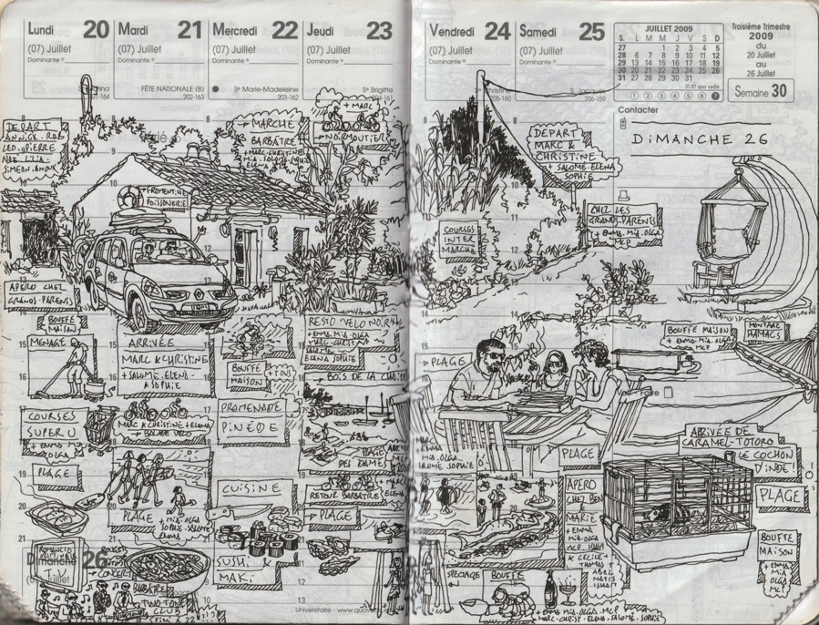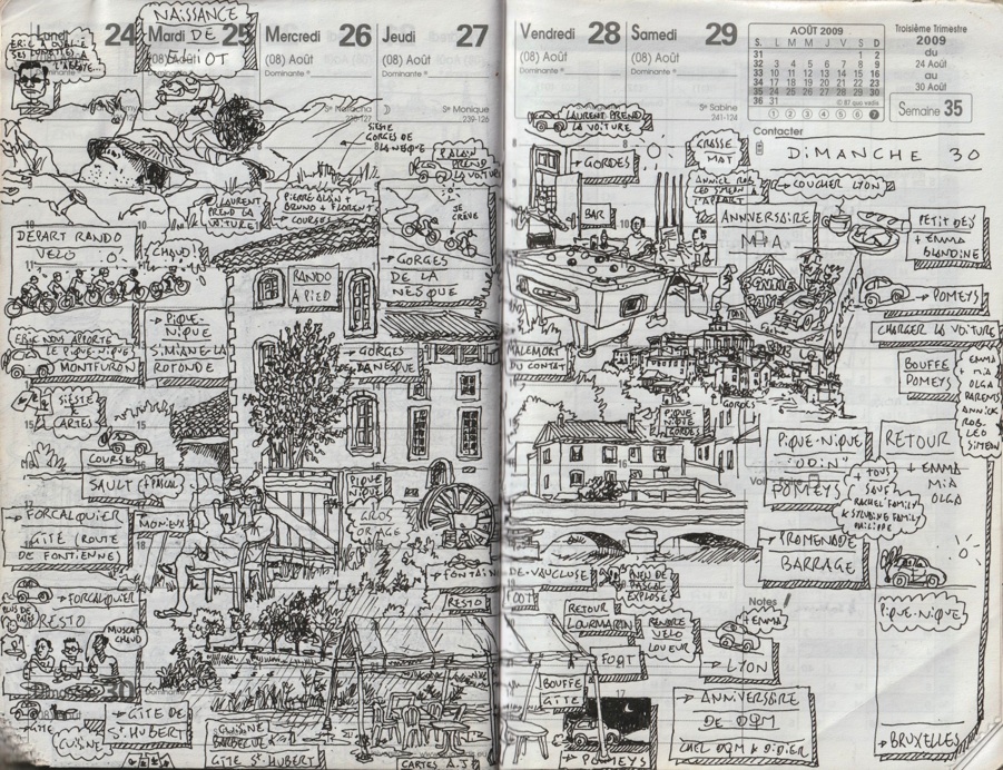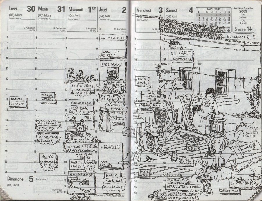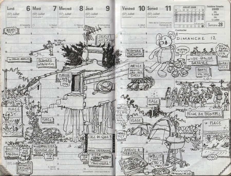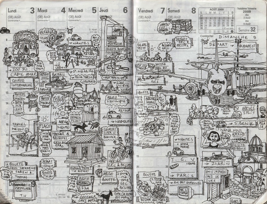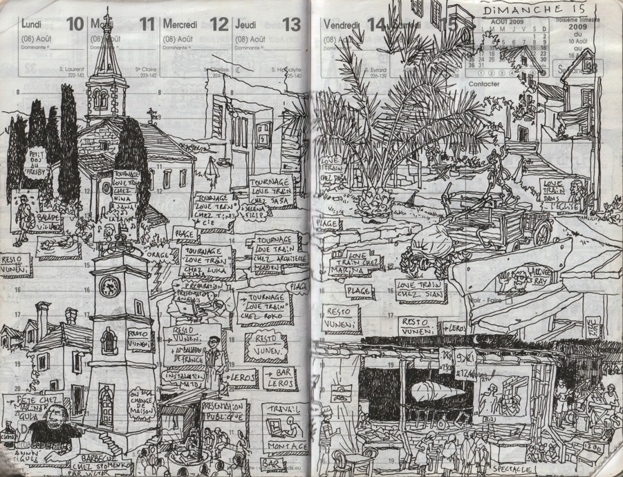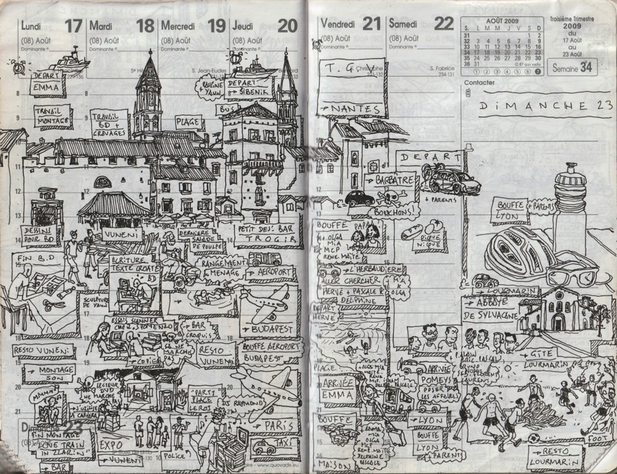 Ensuite, des indications qui doivent correspondre à un plan de tournage à Zlarin (Croatie), et à droite le planning de la rando vélo 2009.