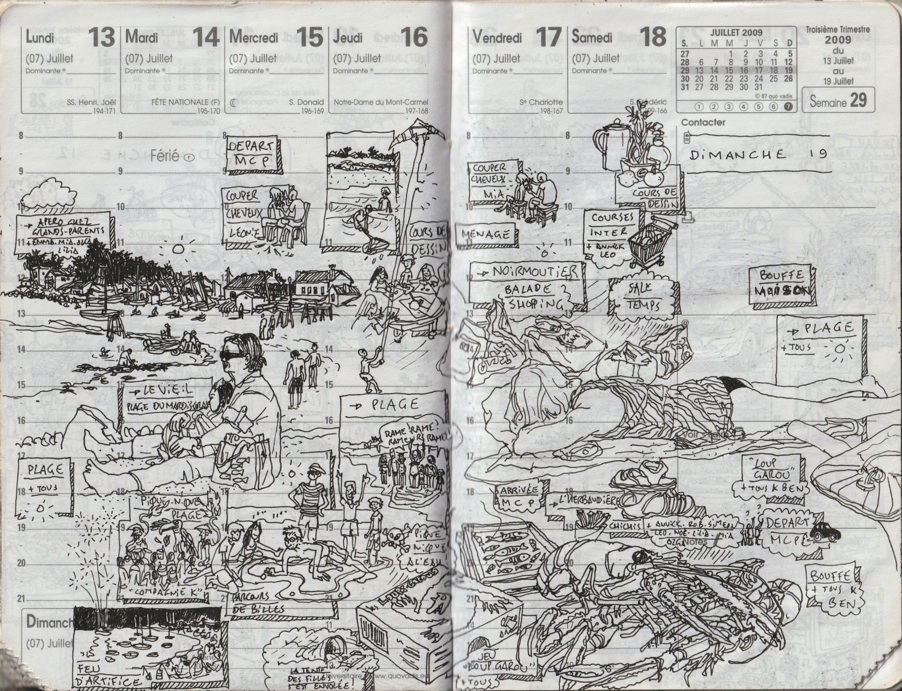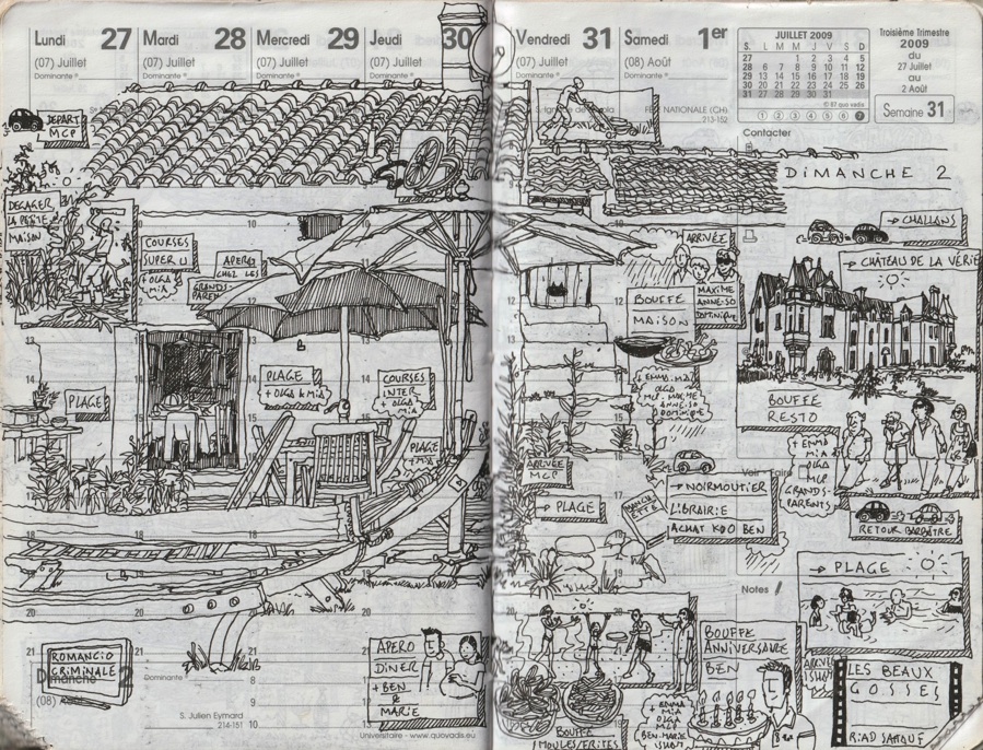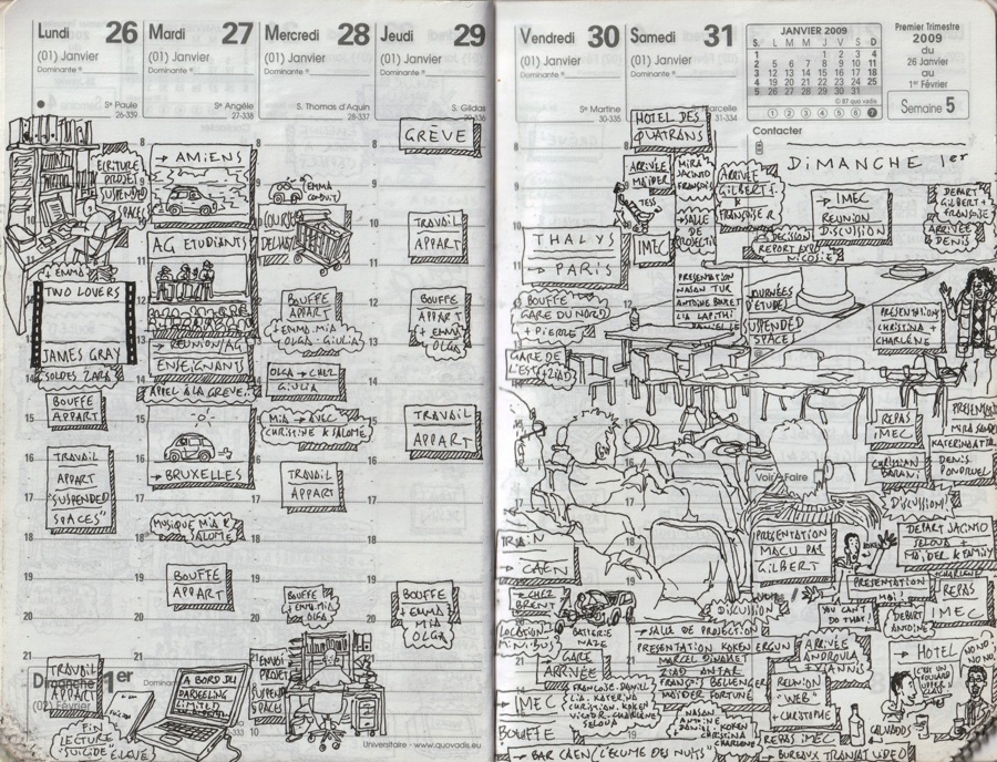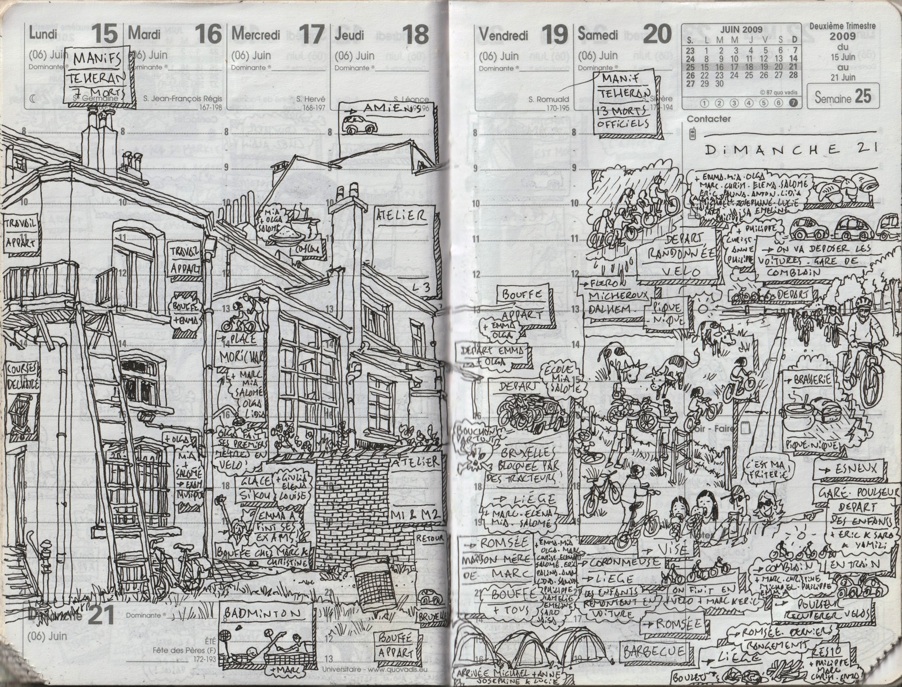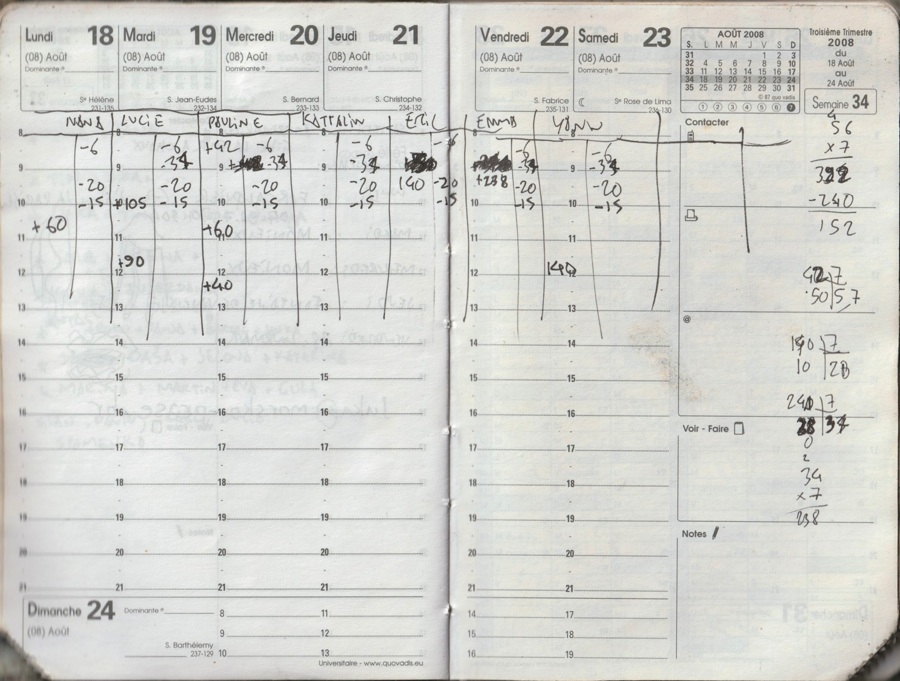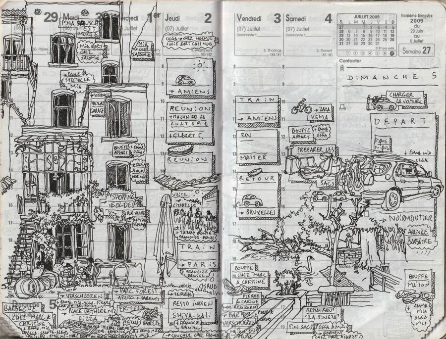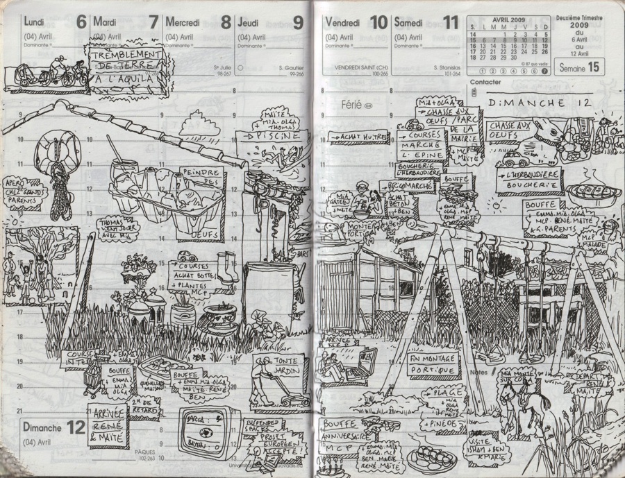 Ensuite, des indications qui doivent correspondre à un plan de tournage à Zlarin (Croatie), et à droite le planning de la rando vélo 2009.